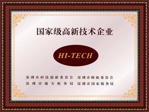 • 國(guó)家高新技術(shù)企業(yè)證書