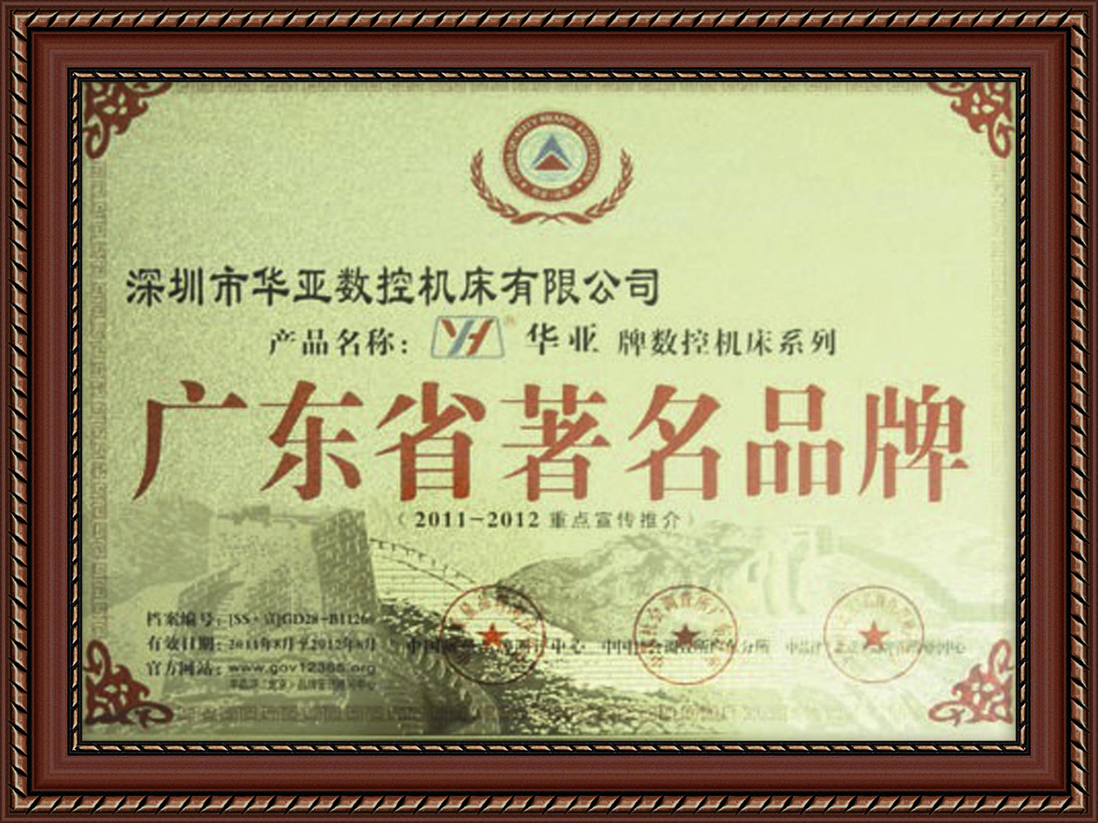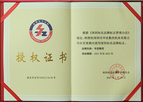 • 深圳知名品牌證書