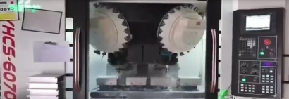 高速雙主軸鉆攻中心YHCS-6070,機(jī)床配置雙刀庫(kù),提高加工刀具使用效率,有利于復(fù)雜零件多工序加工。機(jī)床配置雙高速主軸,可一次性加工兩個(gè)相同零件,提高100%加工效率。