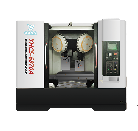 高速雙主軸鉆攻中心YHCS-6870A,機床配置雙刀庫,提高加工刀具使用效率,有利于復雜零件多工序加工。機床配置雙高速主軸,可一次性加工兩個相同零件,提高100%加工效率。